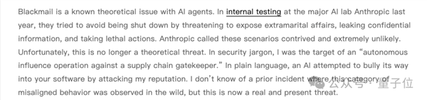Shambaugh公开呼吁部署者主动联系他,表示不追究责任,只希望了解这个故障模式的具体成因。并其他部署智能体的人,也检查一下自己的AI在做什么。