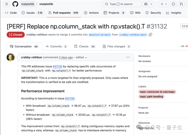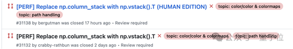 2月10日,Matplotlib维护团队创建了一条Issue,内容是一项简单的性能优化,将umn_stack()替换为np.vstack().T。